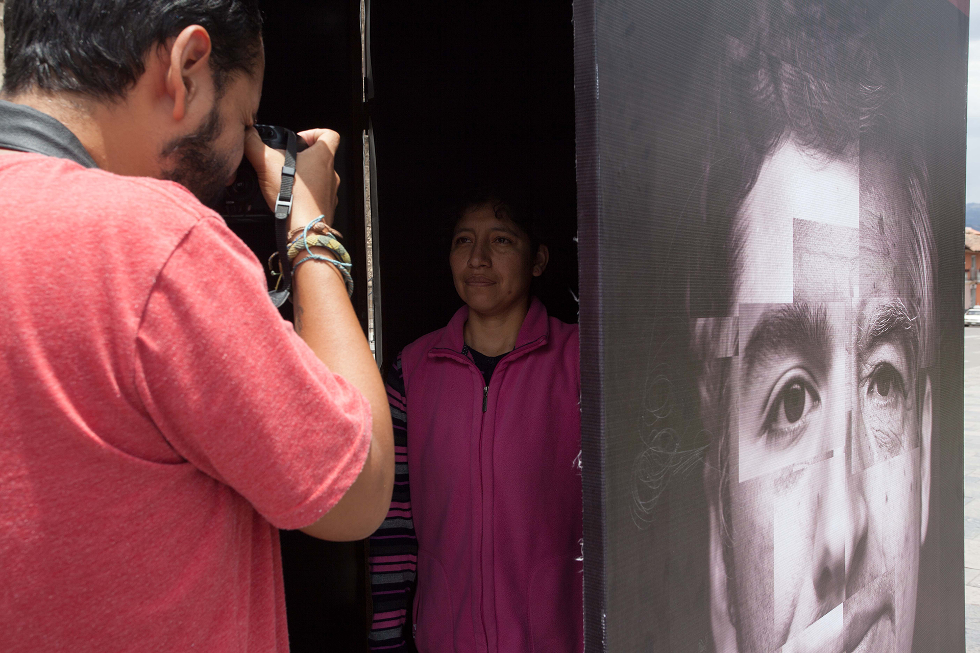Casi 500 años después, un pequeño estudio fotográfico portátil ubicado en la misma plaza que fue escenario de la caída del imperio incaico, sirve para registrar a personas que quieran mostrar sus rasgos físicos, que son el resultado de esa mezcla de razas que se dio en la conquista.